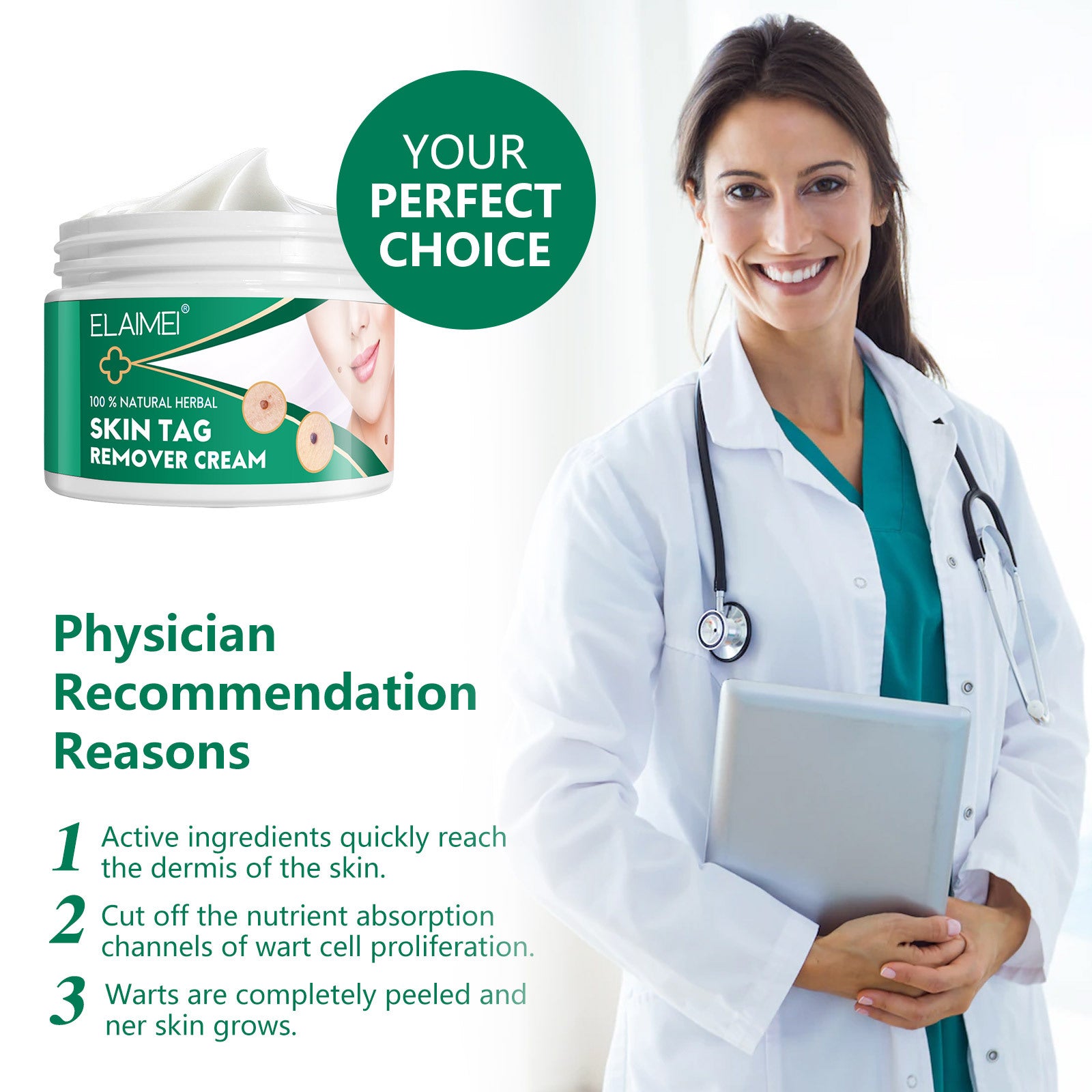ELAIMEI - 100% Natural Herbal-Skin Tag Remover Cream-Safe-Painless and Reliable