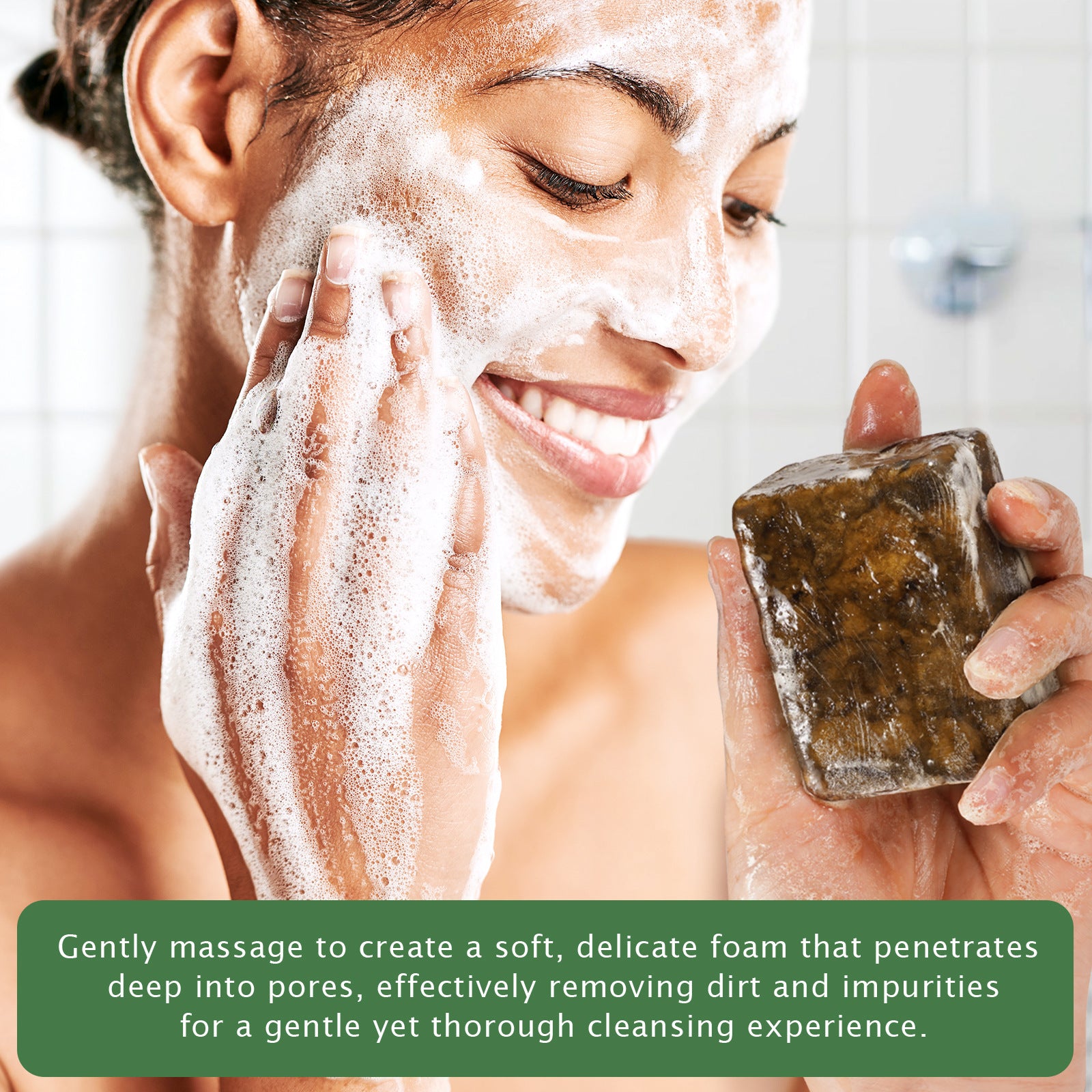 This African black soap contains natural plantain bark ash, a powerful adsorbent that removes skin impurities, lightens dark spots, and exfoliates, leaving your skin smooth, firm, and youthful with a youthful glow.