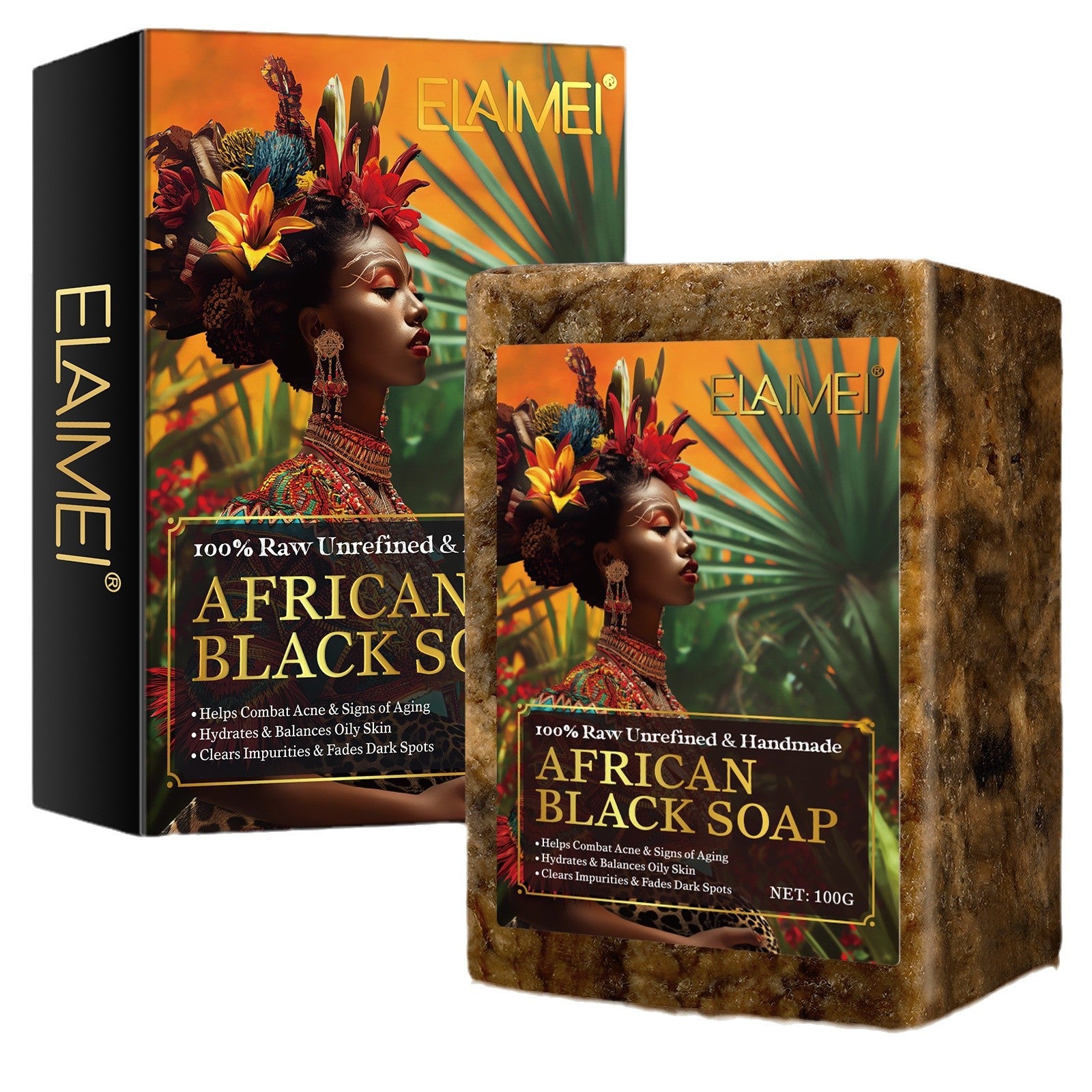 ELAIMEI - African Black Soap-Organic Handmade-Hydrates & Balances Oily Skin