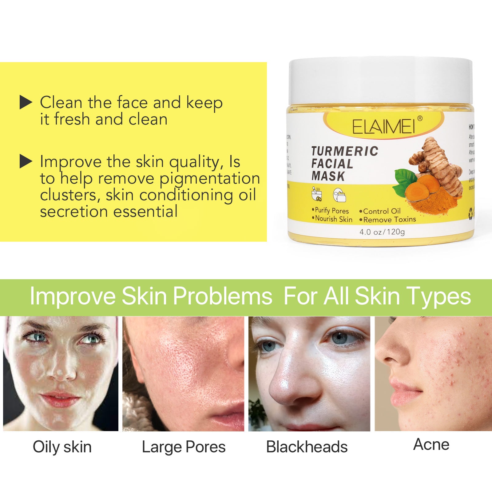 The turmeric face mask with kaolin clay has strong cleaning effect and refreshing mud texture is easy to push away. Daily use helps to clean the skin, produces a gentle exfoliating effect, effectively eliminates whitehead and removes excess oil, dirt and toxins from the face, showing a perfect skin texture. It absolutely a delightful gift for her, girlfriend, wife, mom, grandma, even yourself.