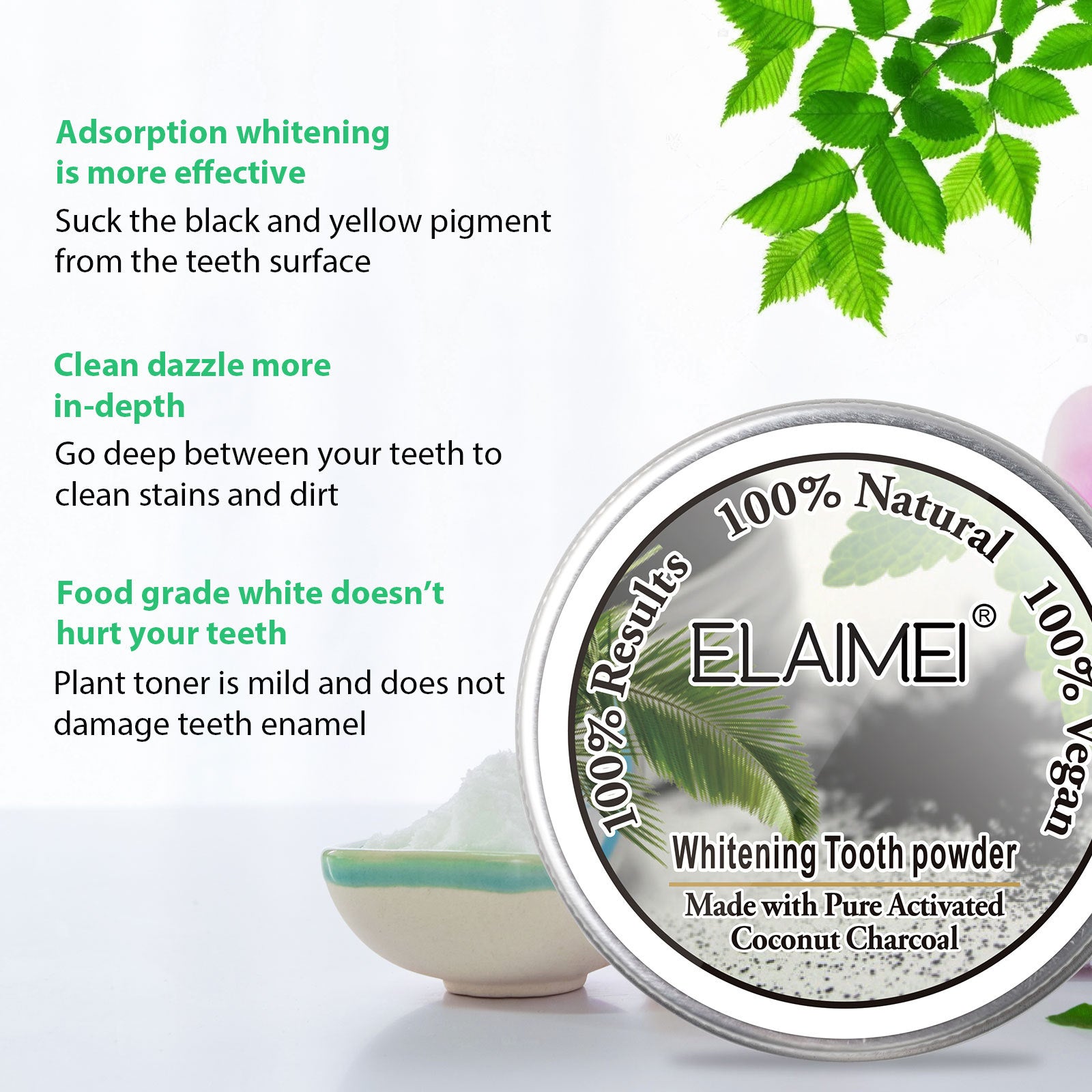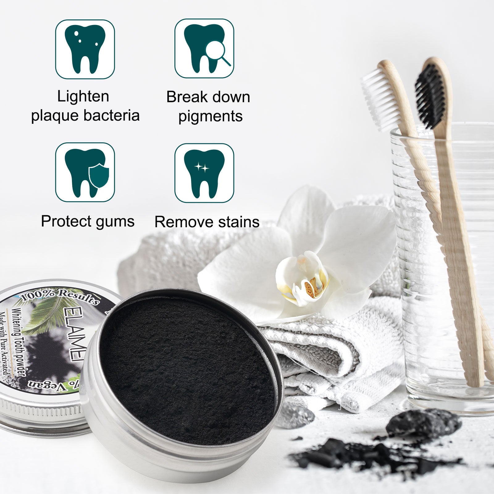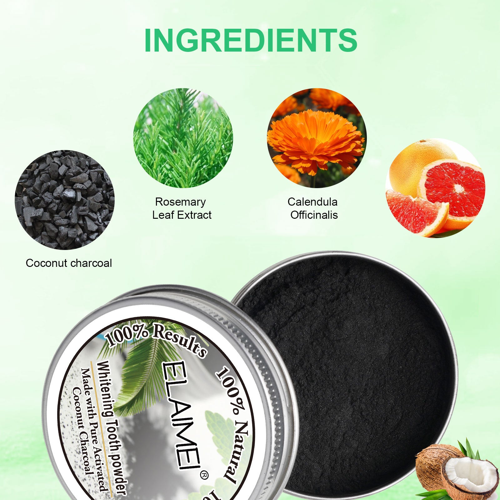 ELAIMEI - Coconut Bamboo Black Tooth Whitening Organic Activated Charcoal Powder