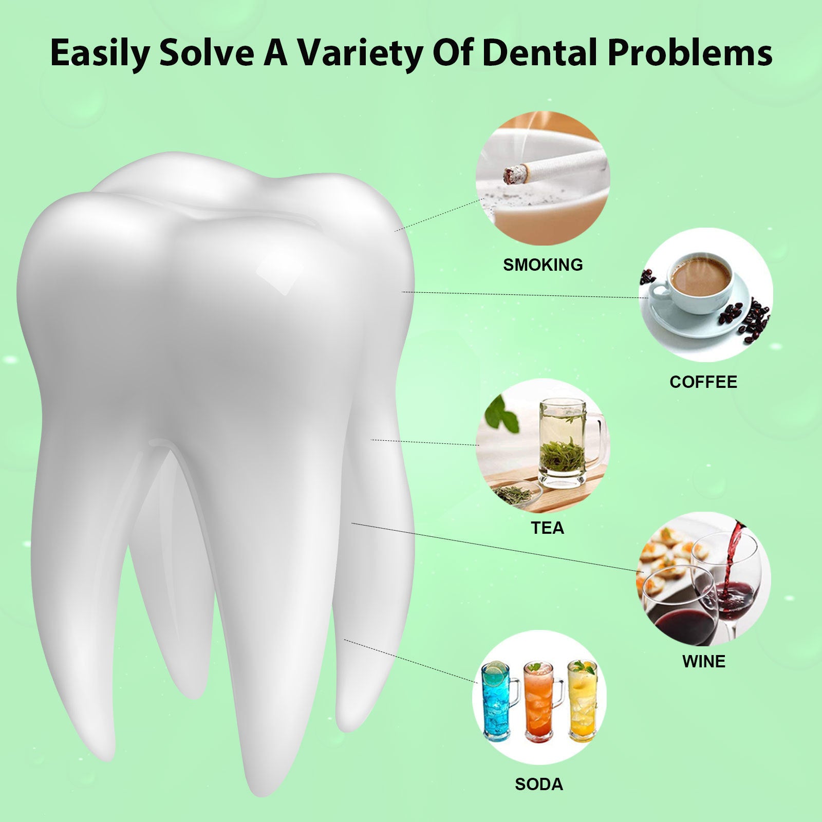 NO MORE COFFEE, WINE, CIGARETTE, & NATURAL STAINS -- Chronic habits like smoking and drinking coffee, tea, or wine can have a significant, aesthetically unpleasant effect on your teeth color. The teeth whitening powder is here to take care of that