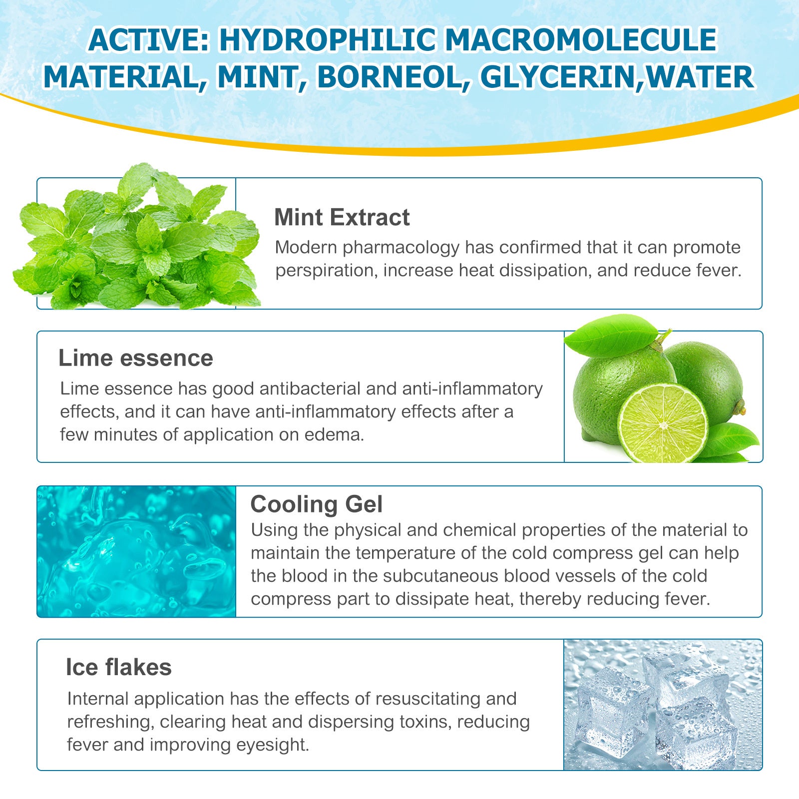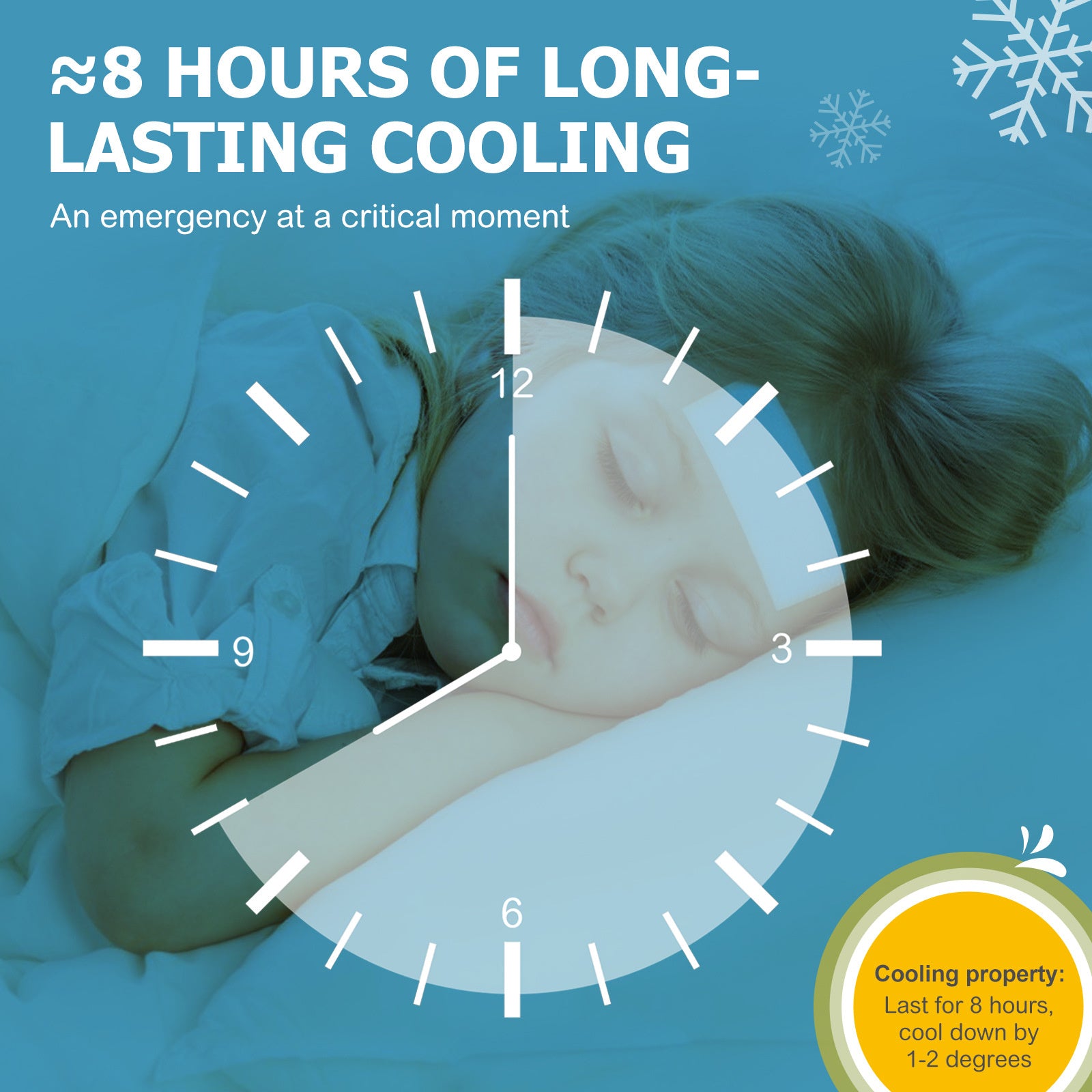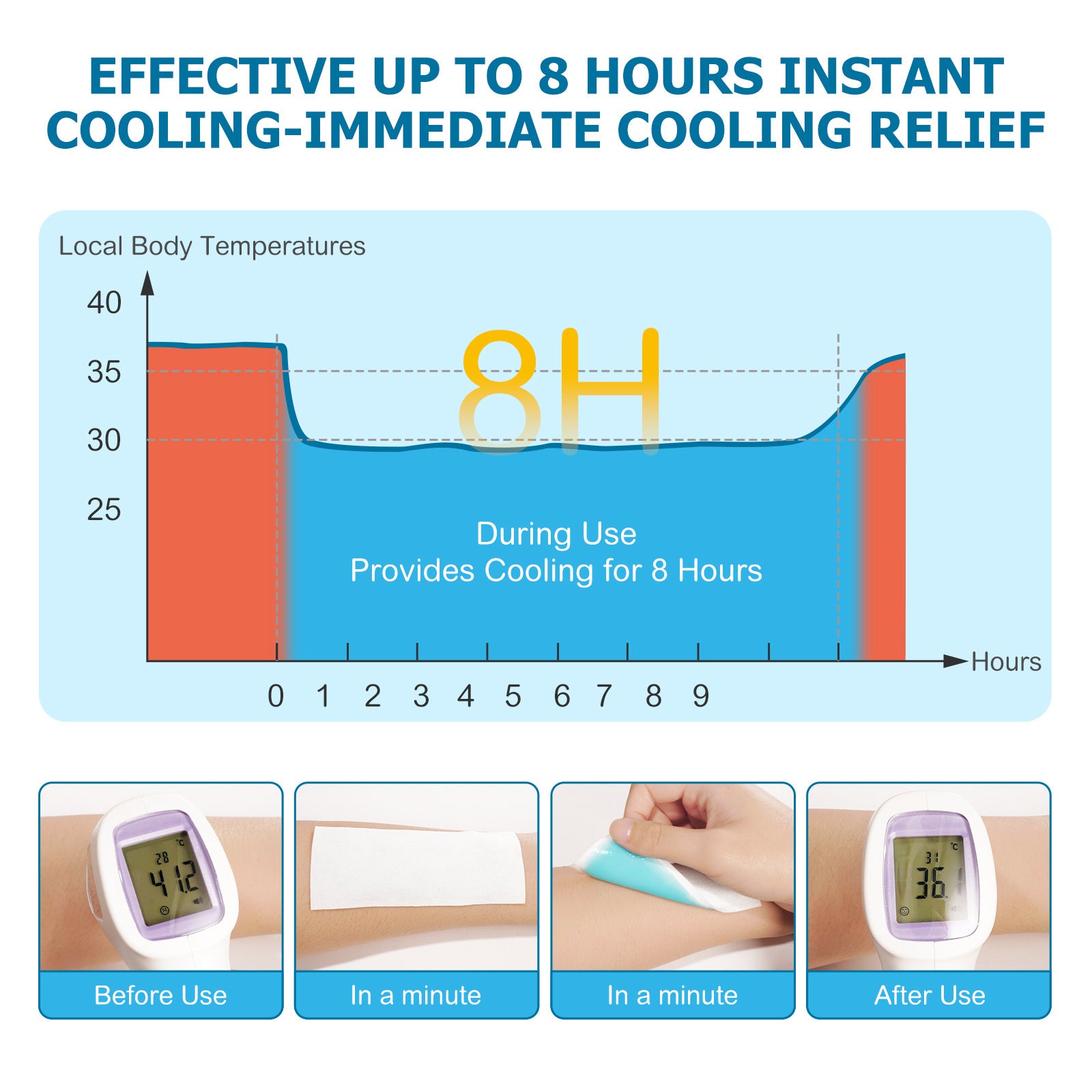 Instant Cooling & Long Lasting - Immediate physical cooling relief, gentle skin-friendly, cool and comfortable. The cooling effect of each sheet lasts up to 8 hours. The non-medicated formulation makes it safe to use with medication.