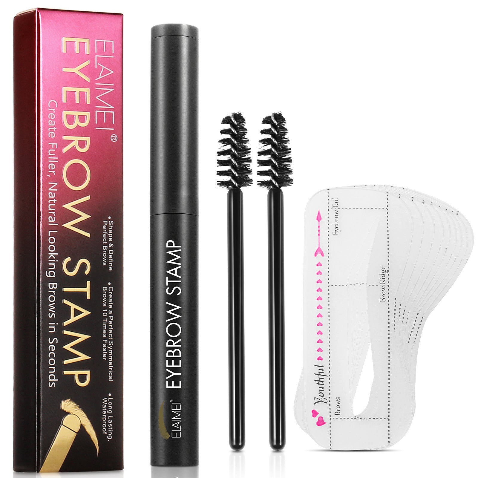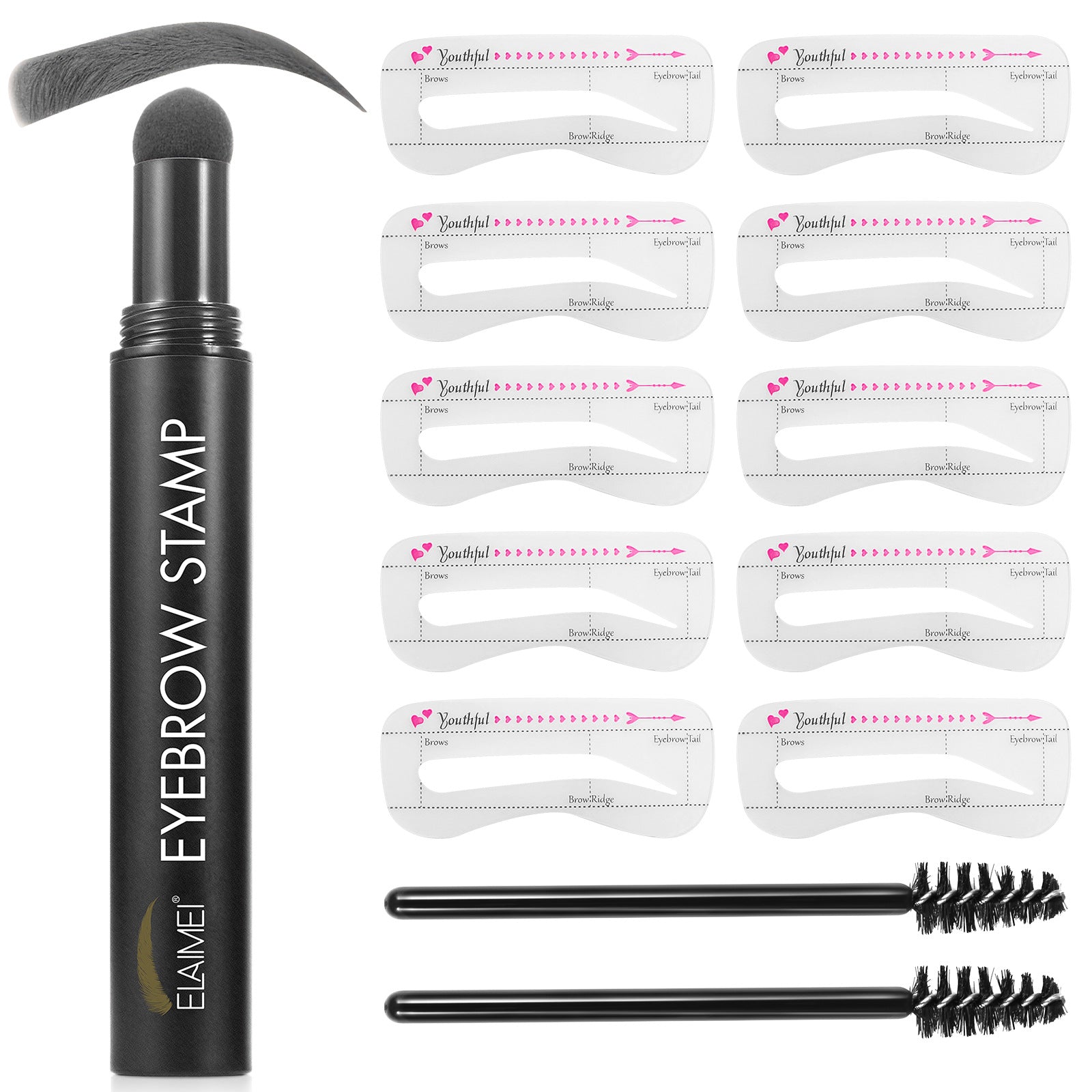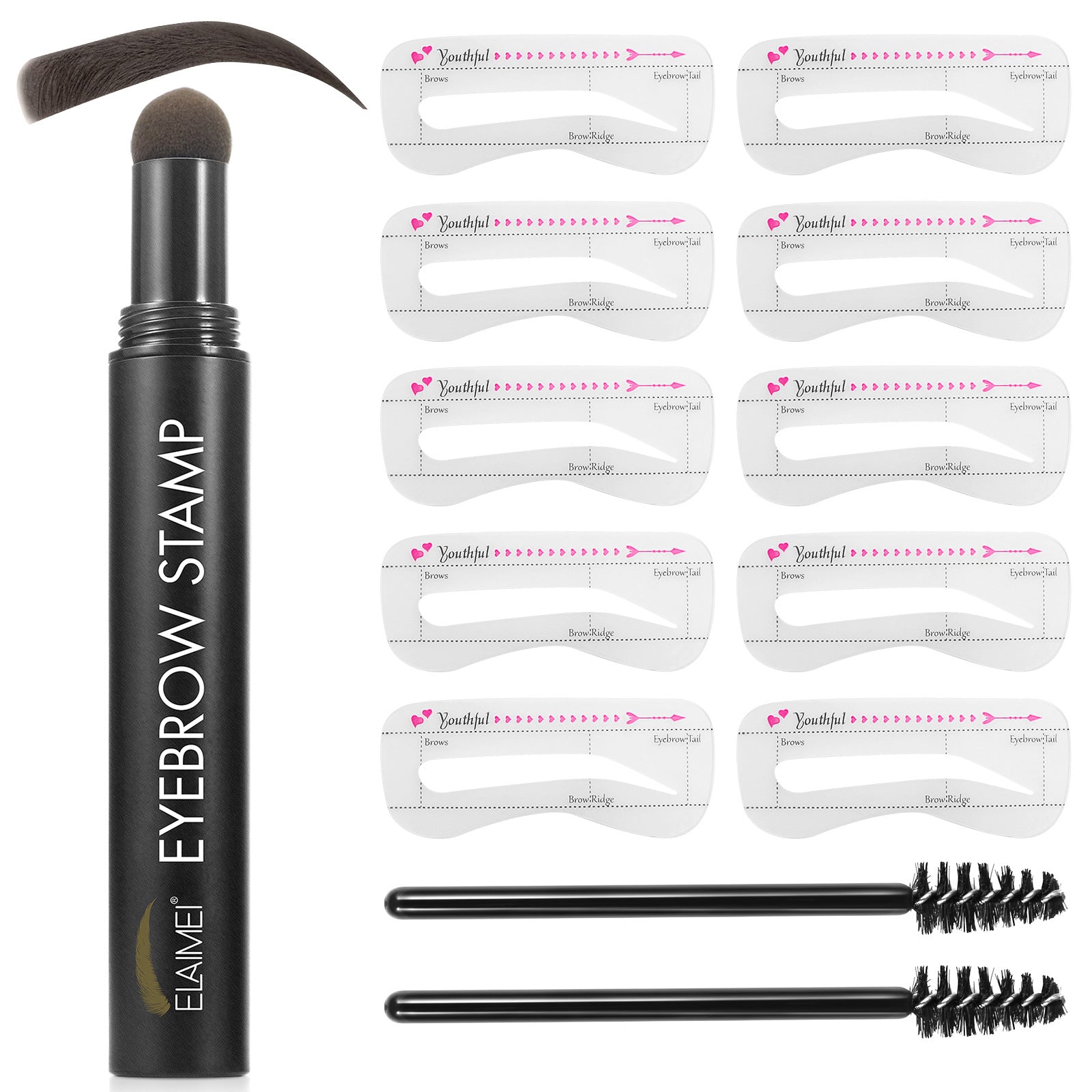 ELAIMEI - Eyebrow Stamp Stencil Kit - Waterproof -10 Piece Eyebrow Stencils - 2 Brushes