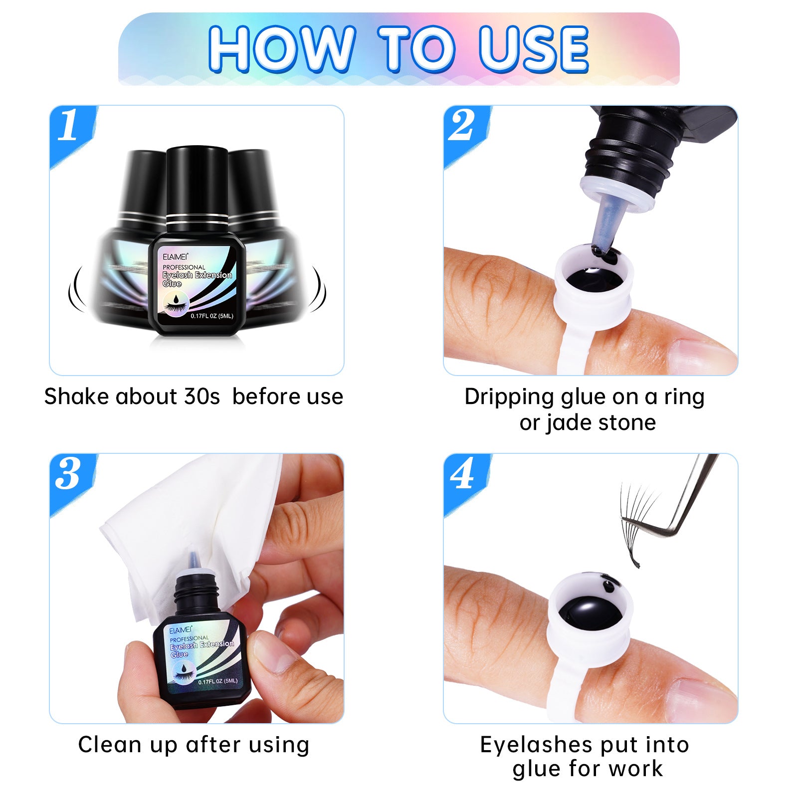ELAIMEI - Eyelash Extension Glue- Professional Lash Extension Glue Strong Ultra Hold