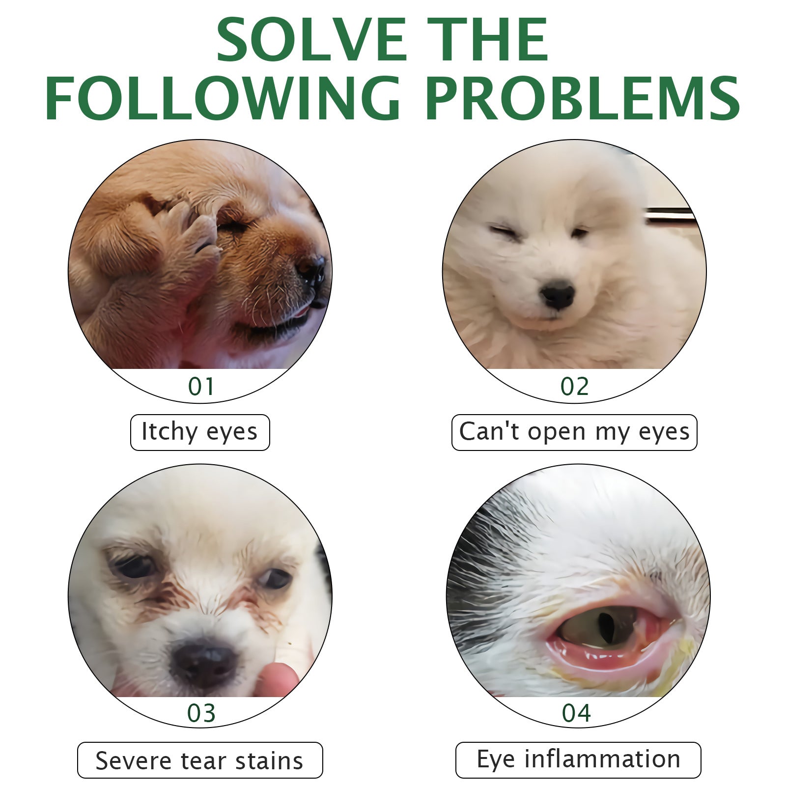 Simple & Widely Applicable]:Just drop 3-5 times a day on your pet's eyes, persist, you will see significant results! Can alleviate pet eye problems such as dry eye, eye inflammation, blurred vision & tear marks.