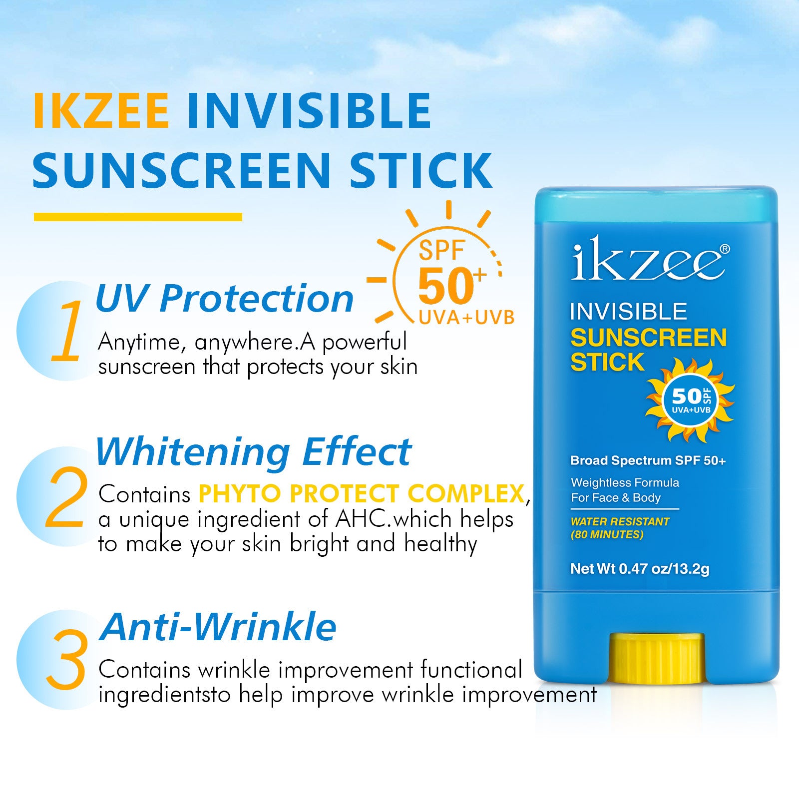 IKZEE - Invisible Sunscreen Stick SPF 50+ - Long Lasting & Water-Resistant