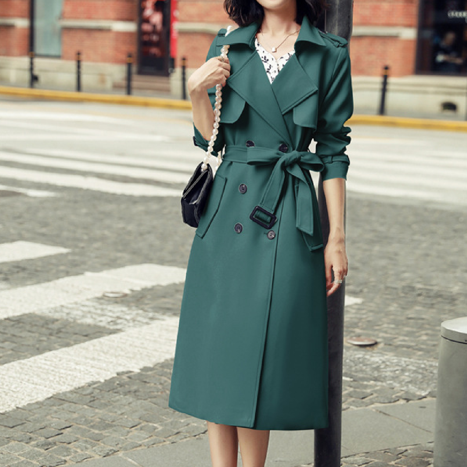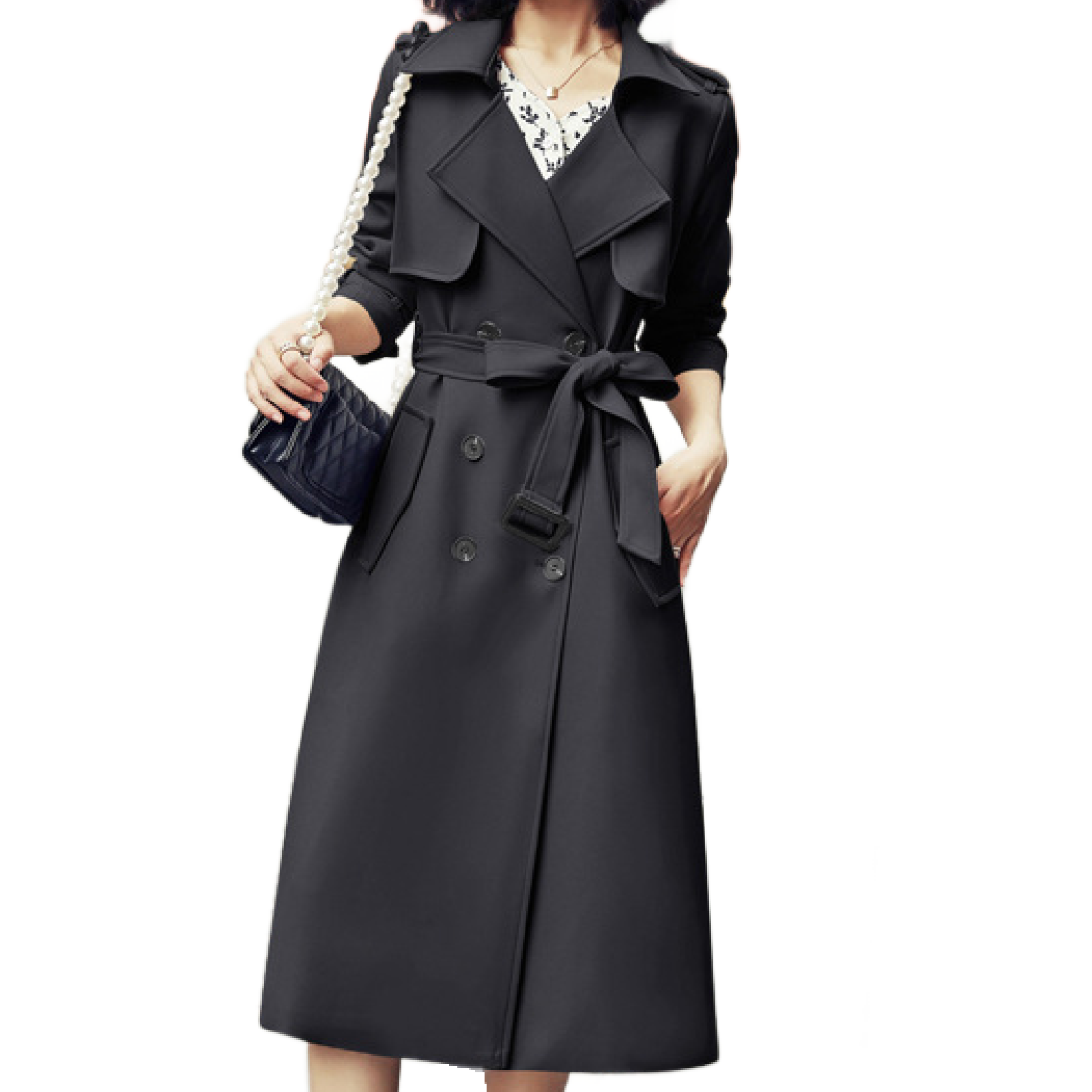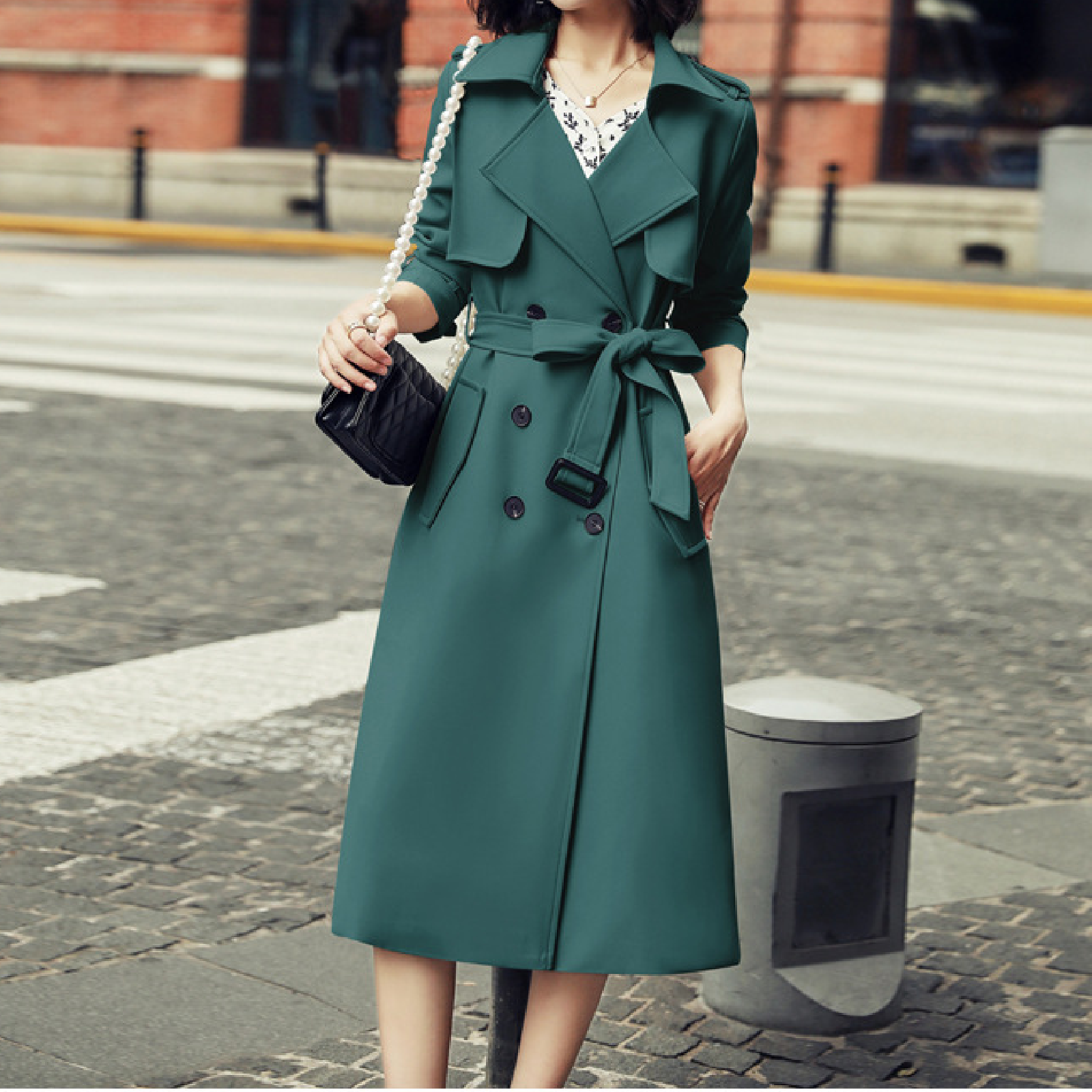 Ladies Fashionable Long Windbreaker Mid-Length Dress Coat