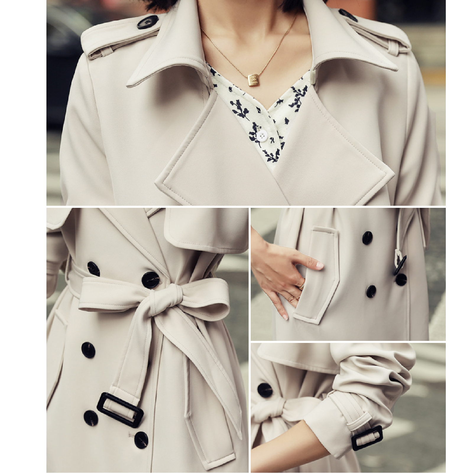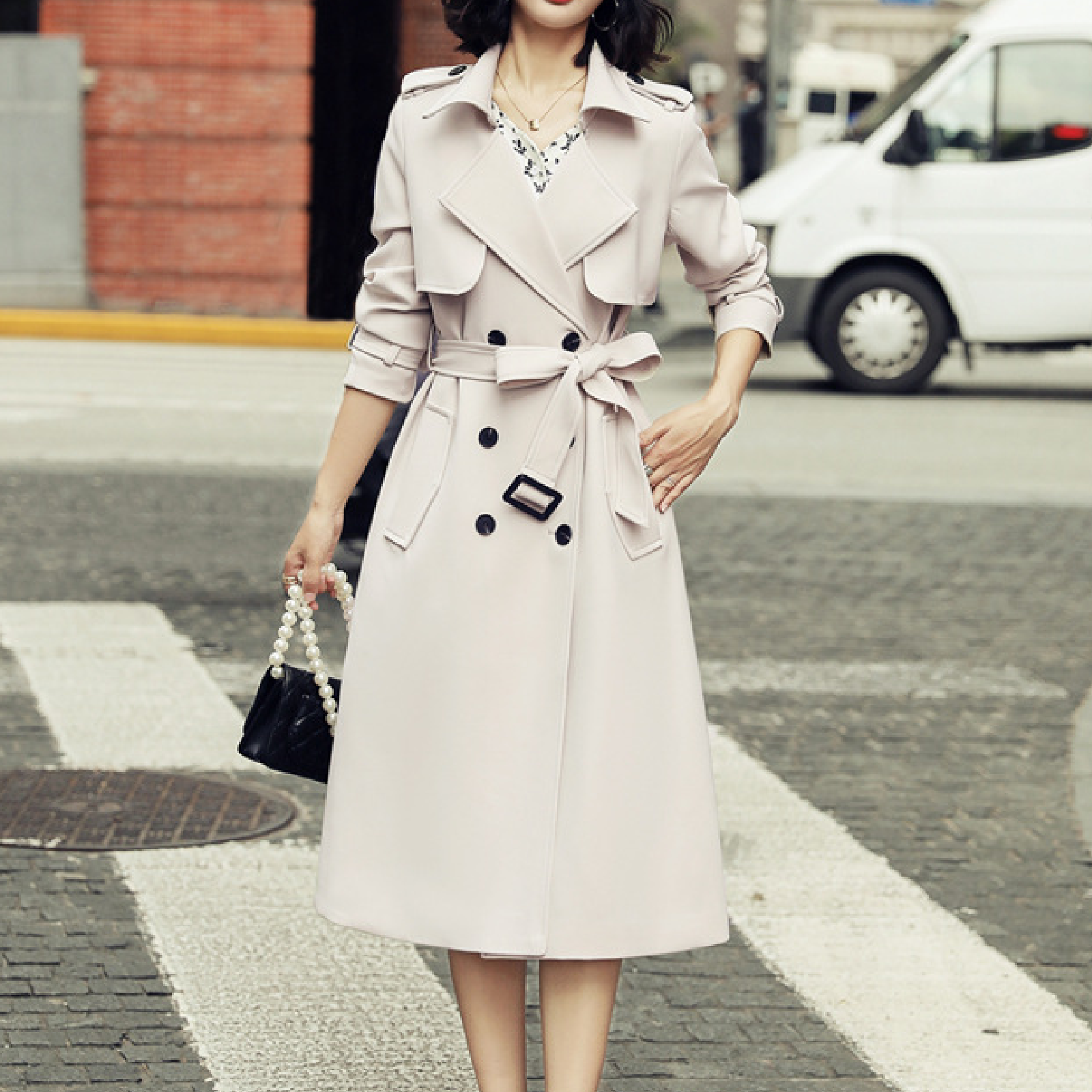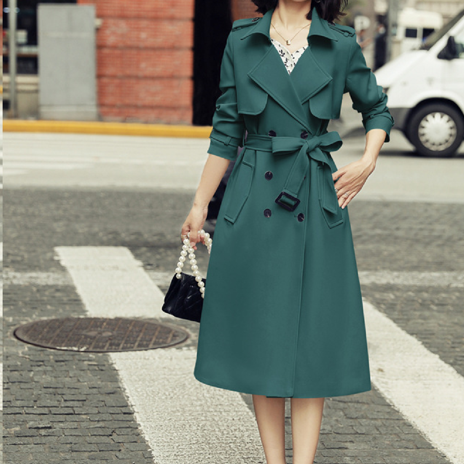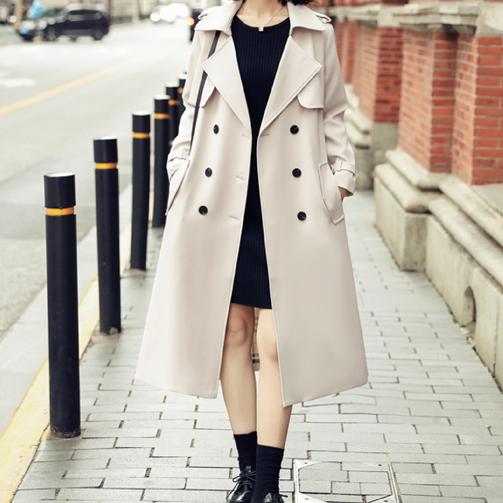 Ladies Fashionable Long Windbreaker Mid-Length Dress Coat
