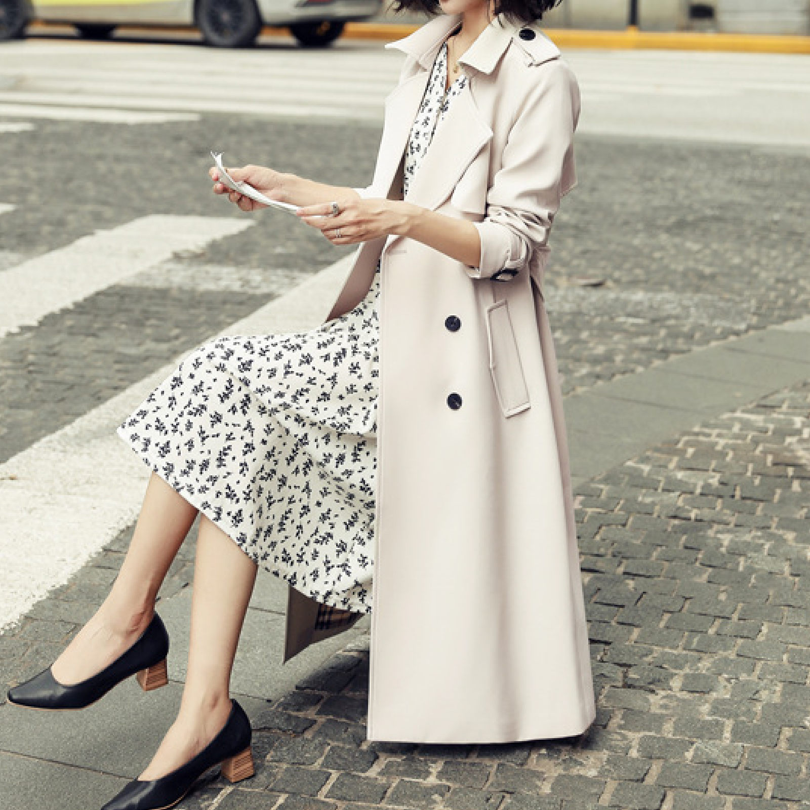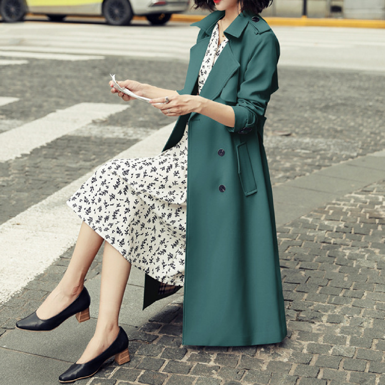 - 1 x Ladies Fashionable Long Windbreaker Mid-Lenght Dress Coat