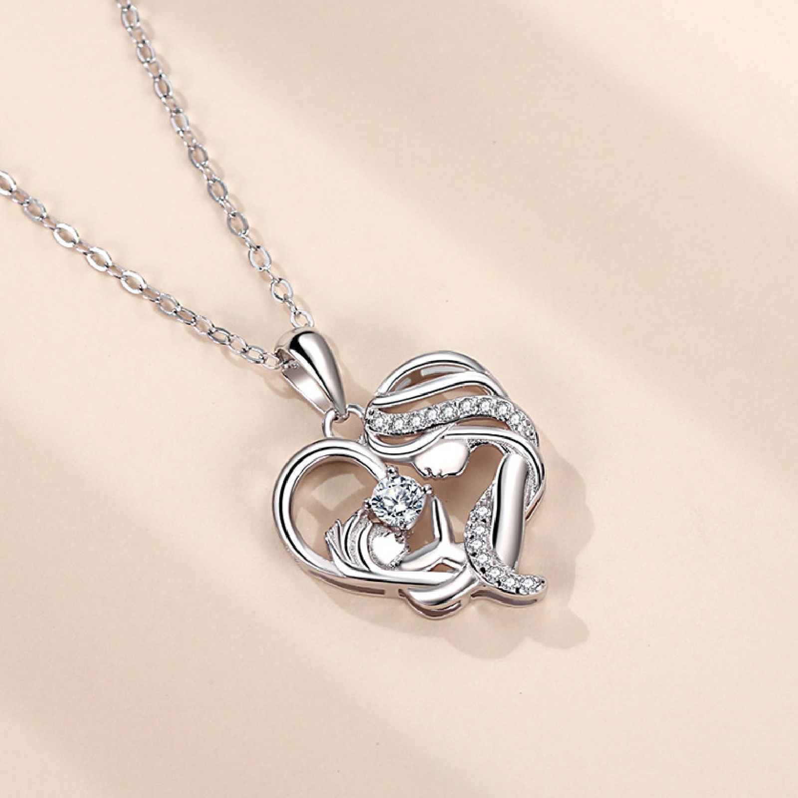 Mother's Love Sterling Silver S925 Necklace Mom Heart-Shaped Love Necklace