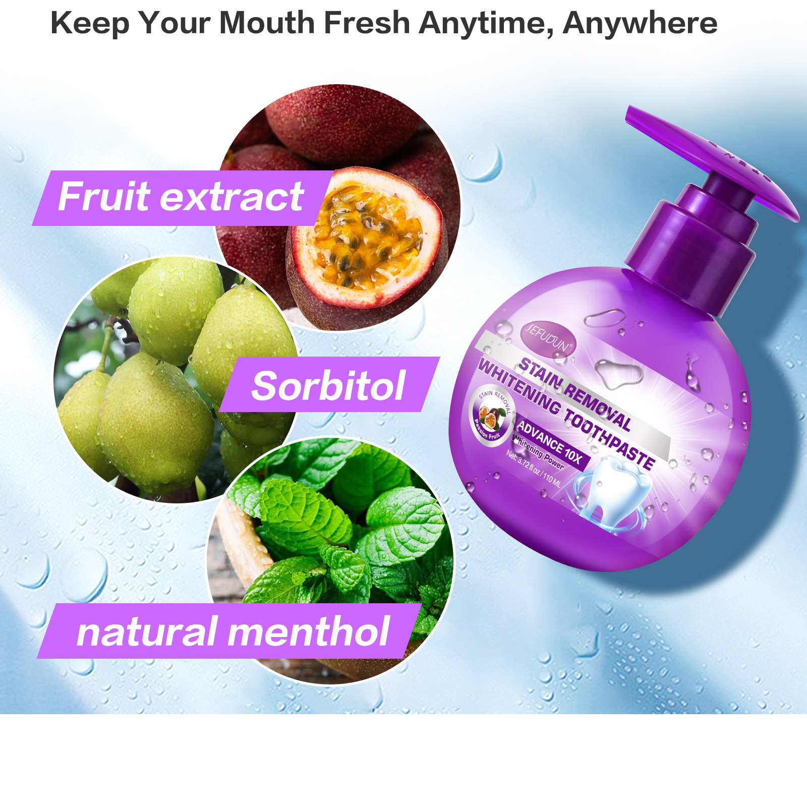 Fresh Smell - Packed full of fruity aroma to keep your mouth fresh and prevent tooth decay, strengthen teeth and gums.